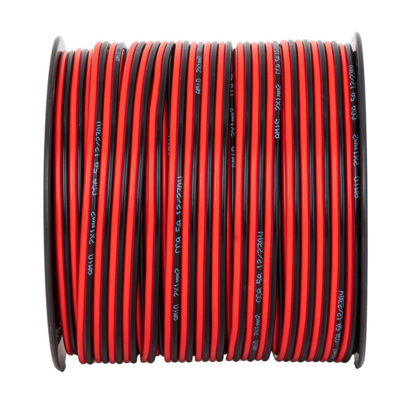 CABLE ELECTRIQUE 2 X 1 MM2 ROUGE-NOIR - BOBINE DE 100 METRES