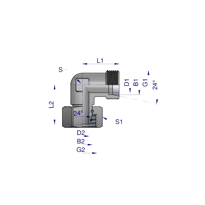 ADAPATATEUR HYDRAULIQUE COUDE 90 DEGRES MALE/FEMELLE M22 X 1,5 - 15L