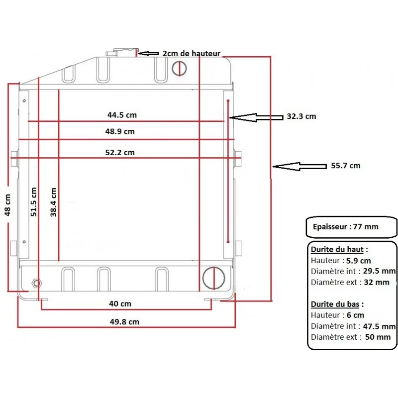 Durabilité : Fabriqué à partir de matériaux de haute qualité, ce radiateur est conçu pour résister à l'usure et aux conditions de travail exigeantes, prolongeant ainsi la durée de vie de votre tracteur.