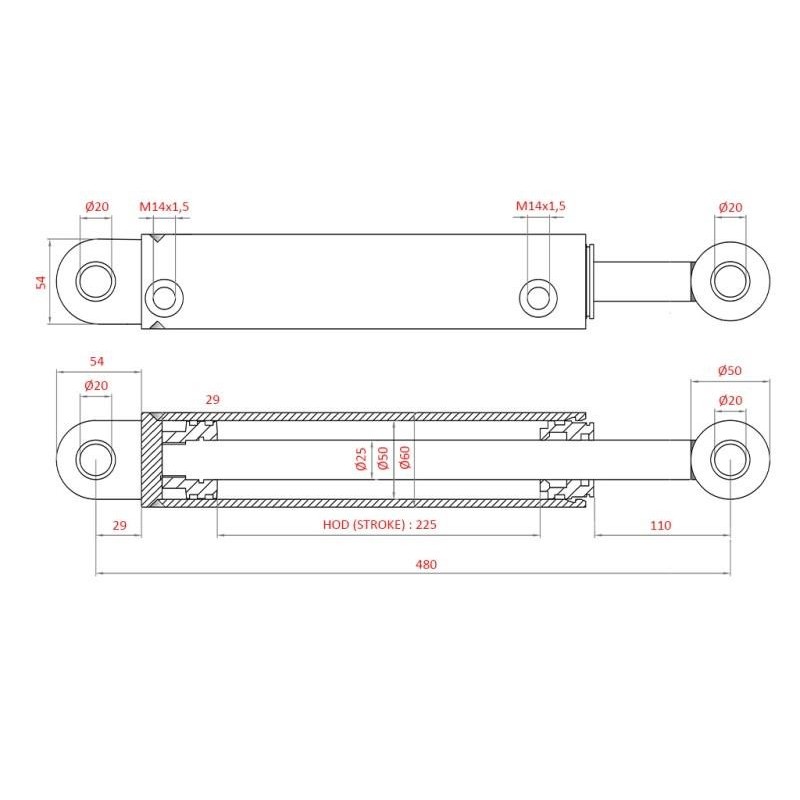 Tige de vérin 25 mm