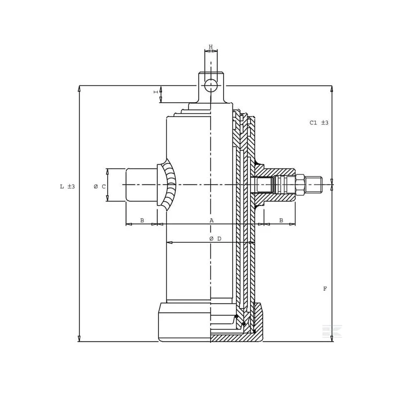 VERIN TELESCOPIQUE 3 EXPANSIONS 8,1 TONNES COURSE 1043 MM